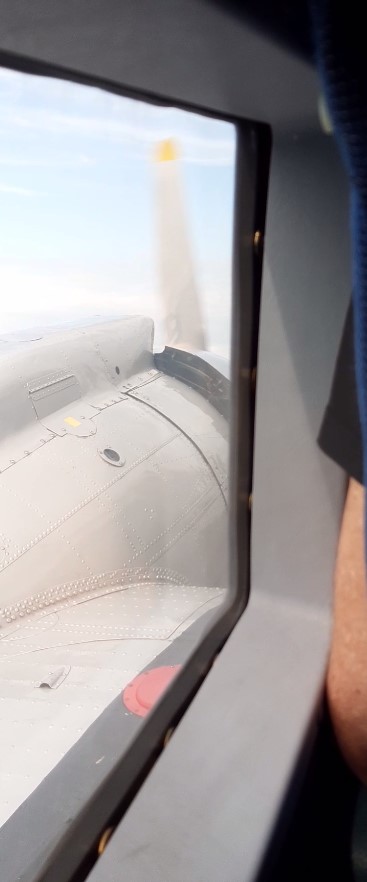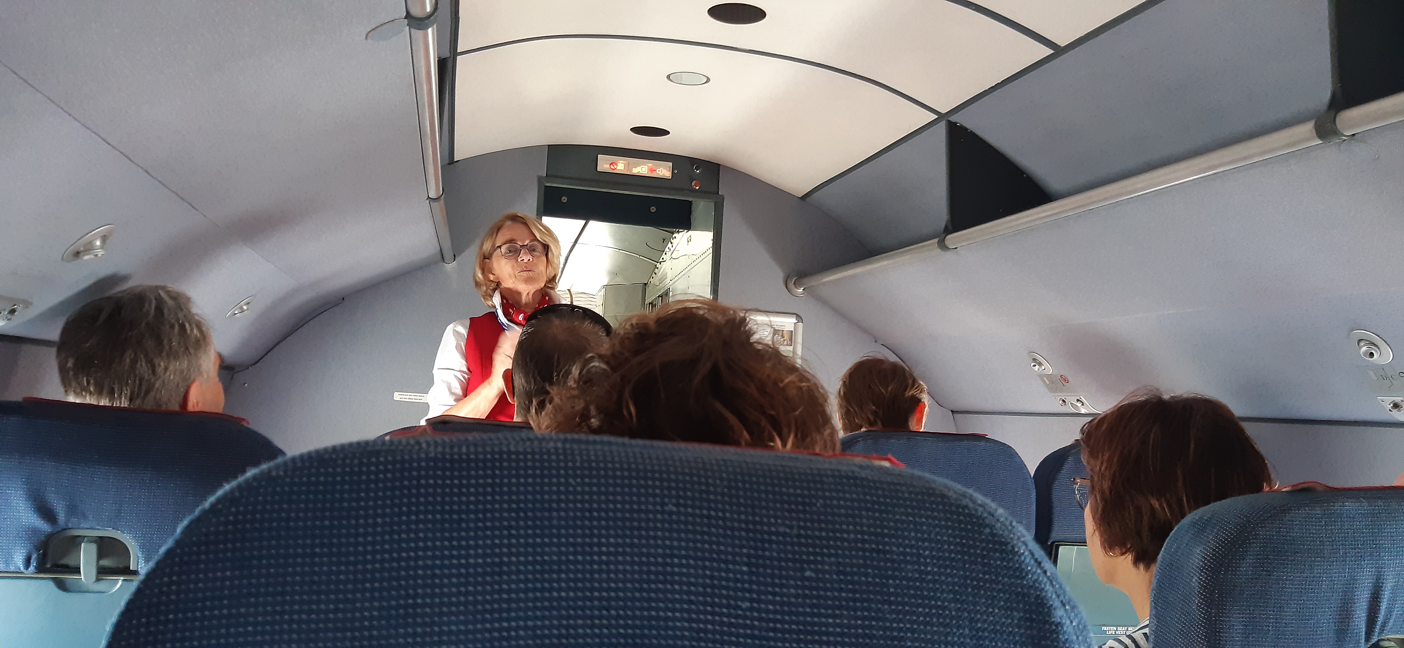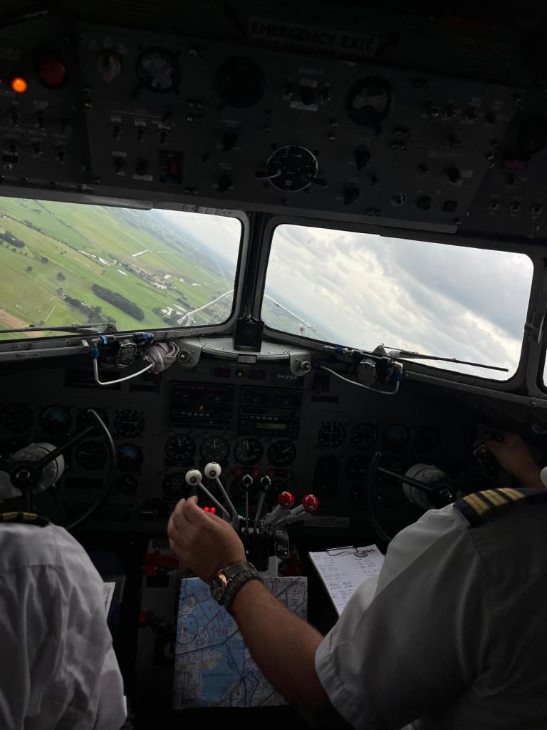 Dat werd een bijzondere ervaring: De briefing, het inspecteren, instappen, instructie door de stewardess, warmdraaien.. en dan de lucht in!
