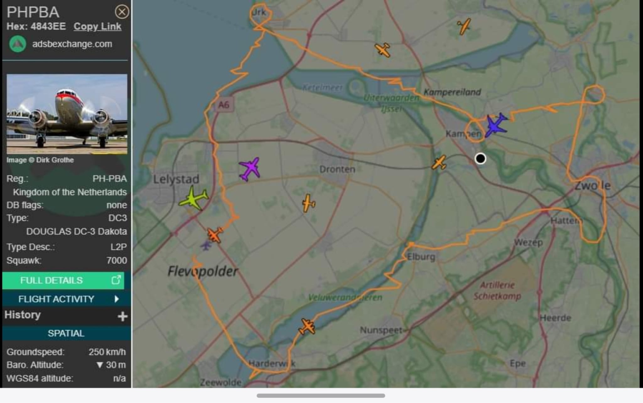 Zoals op de Flightradar afbeelding te zien, maakten we een rondvlucht over een aantal steden, waar dan een ‘ererondje’ werd gevlogen. Hoe leuk is dat voor de inwoners? Ach, het is op ‘Christelijke tijden’ en het heeft natuurlijk voor veel mensen iets nostalgisch – en voor ons als passagiers erg leuk om zaken te herkennen!