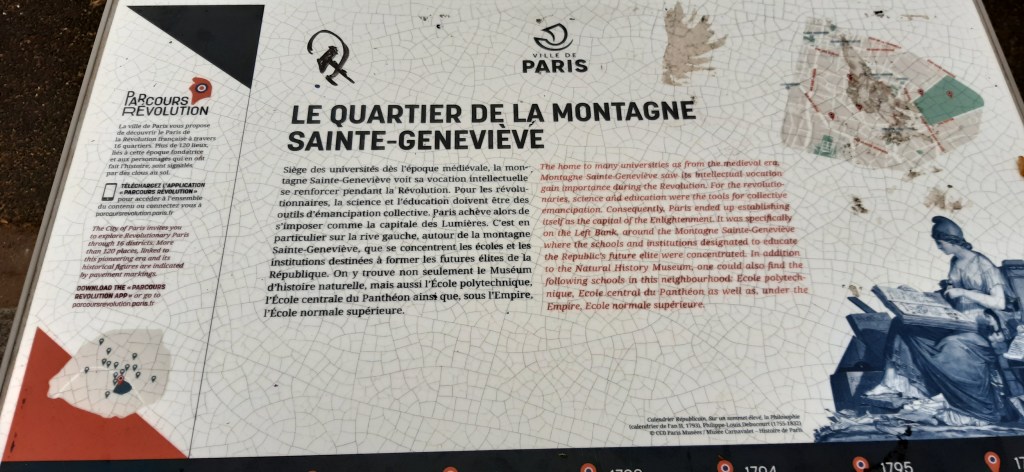 Ik had een tentoonstelling geboekt in het Institut du Monde Arabe. Dat is gevestigd aan de Seine, en vlakbij de universiteitsgebouwen. Ik was wat vroeg, liep even rond in de buurt – en realiseerde me dat dat vlakbij mijn eerste schreden in Parijs was! Nee, niet 1968 maar 1967. Net mijn eindexamen gedaan, busreis met ROY, een weekje in een goedkoop hotel in het 5e arrondissement vlakbij de Place de Contrescarpe, en bij de Ecole Polytechnique waar een jongen studeerde die ik de zomer daarvoor had ontmoet. We hadden met elkaar gecorrespondeerd (goed voor mijn Frans) en we ontmoetten elkaar een paar keer tijdens dat verblijf in 1967. De Ecole Polytechnique was een militair instituut dus mijn vriend liep in zijn gala uniform mee in de parade van de Quatorze Juilliet. En die avond was er dansen op de Place de Contrescarpe. Ik zag de buurt nog hetzelfde maar toch veranderd: het gebouw van de Ecole Polytechnique stond leeg en er werd kennelijk naar een nieuwe bestemming gezocht. Ja, zo gaat dat in Nederland ook .