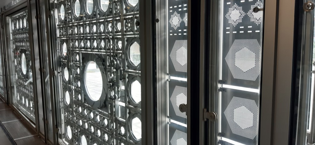 Kenmerkend aan het gebouw zijn de ramen; die worden bestuurd door de hoeveelheid invallend licht en veranderen dan in patroon.