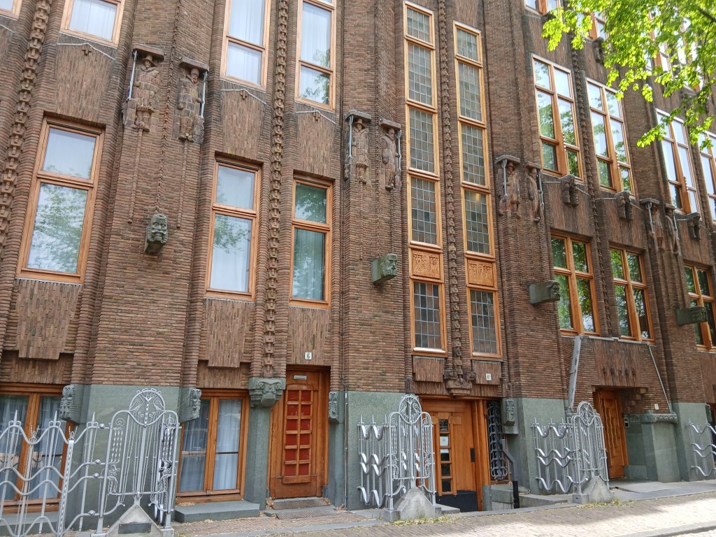Voordat ik bij de pont kom: het Scheepvaarthuis! Het eerste gebouw dat onder de noemer Totaalkunstwerk viel. Een samenwerkingsproject van architecten, bouwers en kunstenaars. Nu is het een hotel.