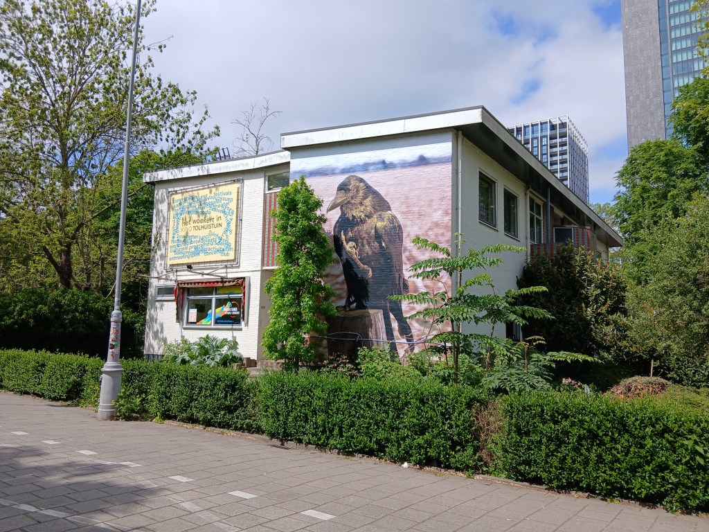 Bij het verlaten van de Tolhuistuin aan de kant van het IJ steekt er iemand over – een eekhoorn, is mijn eerste associatie. Maar het is toch echt een rat. Och..