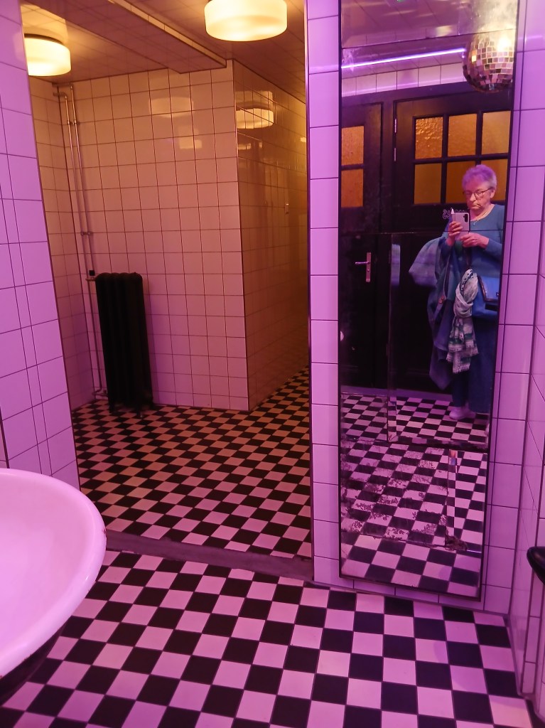 En dan kom ik op een plein met veel horeca, waar heel prominent aanwezig: het voormalig badhuis. Het dateert uit de tijd dat men in huis geen badkamer had dus het badhuis was er voor de hygiëne – maar had ook een sociale functie.