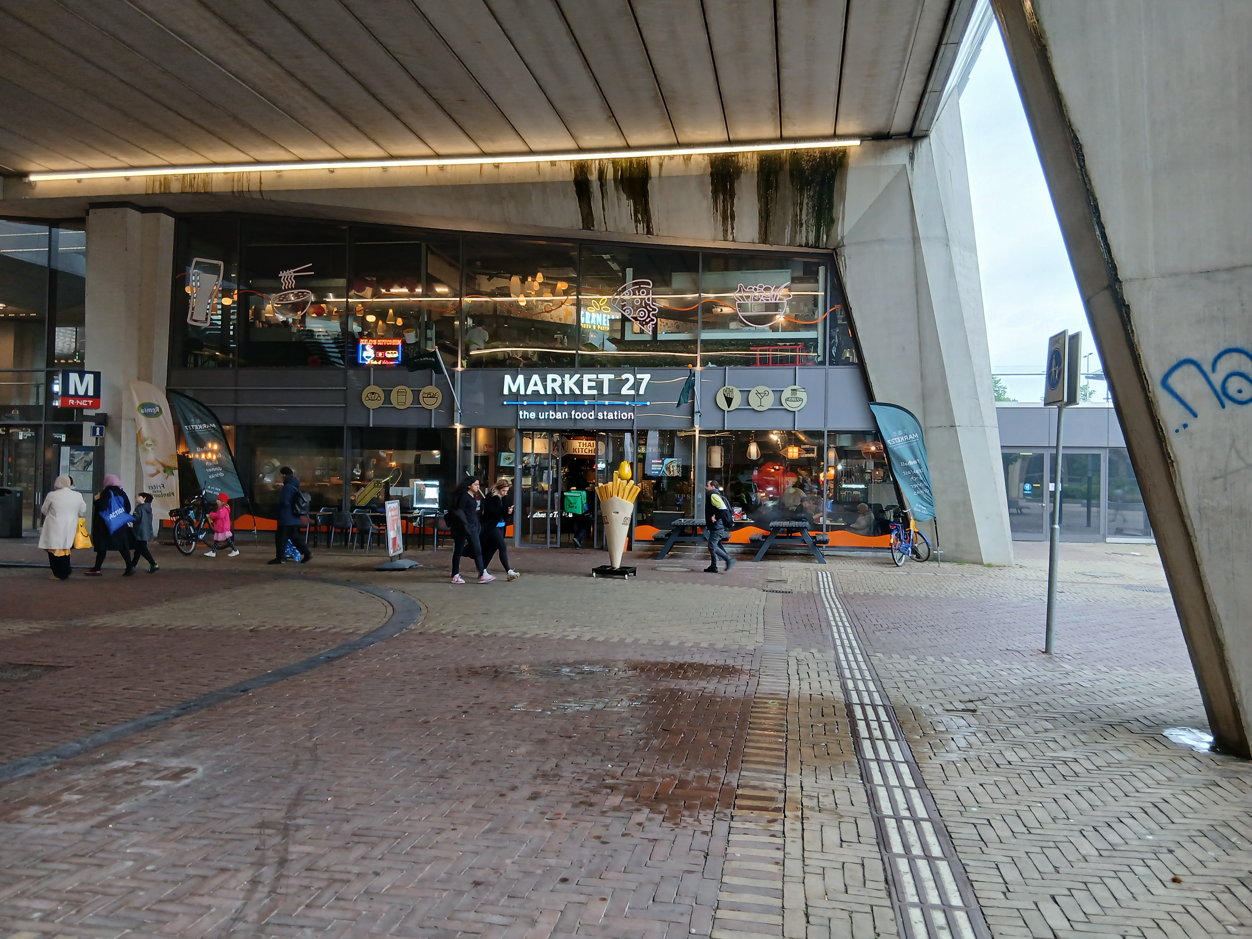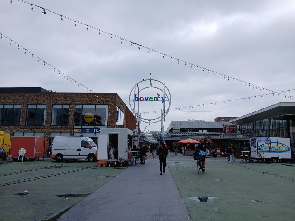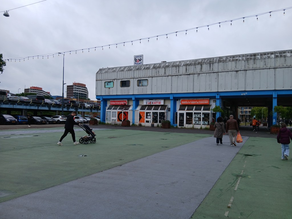 Die middag was ik in Noord, omdat ik naar de film zou gaan in Pathé Noord: Ocean van David Attenborough. Ik was er dus al tijdig naar toe en bij het uitstappen op Metrostation Noord zag ik een grootstedelijke ontwikkeling, met hoogbouw en een knipoog naar het Gare du Nord. Straten heten Gare du Nord en Termini, en een kruispunt heet – ook al zo kosmopolitisch – Kings Cross. Er is net een foodmarket geopend pal op het metrostation, met cateraars van alle herkomsten. (Ik at iets Vietnamees). Na een stuk met hoogbouw, waar ook de Vervoerregio ( ‘Metropool regio Amsterdam’) is gevestigd, (wie kan daar eigenlijk wonen?) kom je op een groen plein, het Buikslotermeerplein; dat is fijn in een steenwoestijn. Daar staat ook de bioscoop, en er zijn speelplekken zoals een fietscrossbaan, waar net een licht gewond jongetje werd opgevangen door zijn vriendjes en een moeder. Vriendjes allemaal zwart, gewond jongetje blond, dat maakt die kinderen zo te zien niets uit. Iets verderop een stenen plein met wat aftandse gebouwen er omheen: gemeente-loket, buurthuis met culturele activiteiten, kringloopwinkel.. een prima plek om je ‘foodtruck’ neer te zetten met eten uit Oekraïne, Vietnam, Turkije. Net buiten het winkelcentrum Boven ’t IJ.