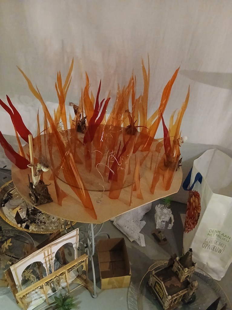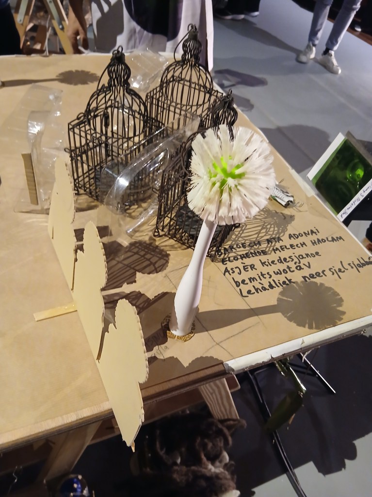 Een belangrijk thema: in de Middeleeuwen waren de ‘Moren’ (in de inleiding hoorde ik uitgelegd waarom ze in de voorstelling de benaming Moriscos gebruikten) goed vertegenwoordigd in Zuid Spanje, en ook de Joodse gemeenschap bloeide. Kunst, cultuur, literatuur, wetenschap – alles floreerde. In de bibliotheken van Granada en Cordoba was zowat alle informatie te vinden, en van heinde en ver kwam men er naartoe. Om te lezen wat er bekend was over de bloedsomloop en andere kennis over het menselijk lichaam. Om liefdespoëzie te kunnen lezen. Totdat in 1492 de Katholieke Koningen Ferdinand en Isabella de stad veroverden en het hele Zuiden innamen. Geen godsdienstvrijheid meer. Moslims werden verdreven naar Marokko, Joden moesten zich bekeren. Moslims die bleven mochten ook hun godsdienst niet meer uitoefenen en hun cultuur moest onzichtbaar zijn. De familiegeschiedenis van Abdelkader heeft zijn wortels hier in Andalusië. In de voorstelling zien we een vrouw die werd opgepakt omdat ze aubergine met couscous bereidde; ze eindigde op de brandstapel. (Overigens een prachtige voorstelling, met veel verhalen en schimmenspel, gemaakt met miniatuur monumenten maar ook met vogelkooien, afwasborstels.. . Een recensie. in de Theaterkrant. )