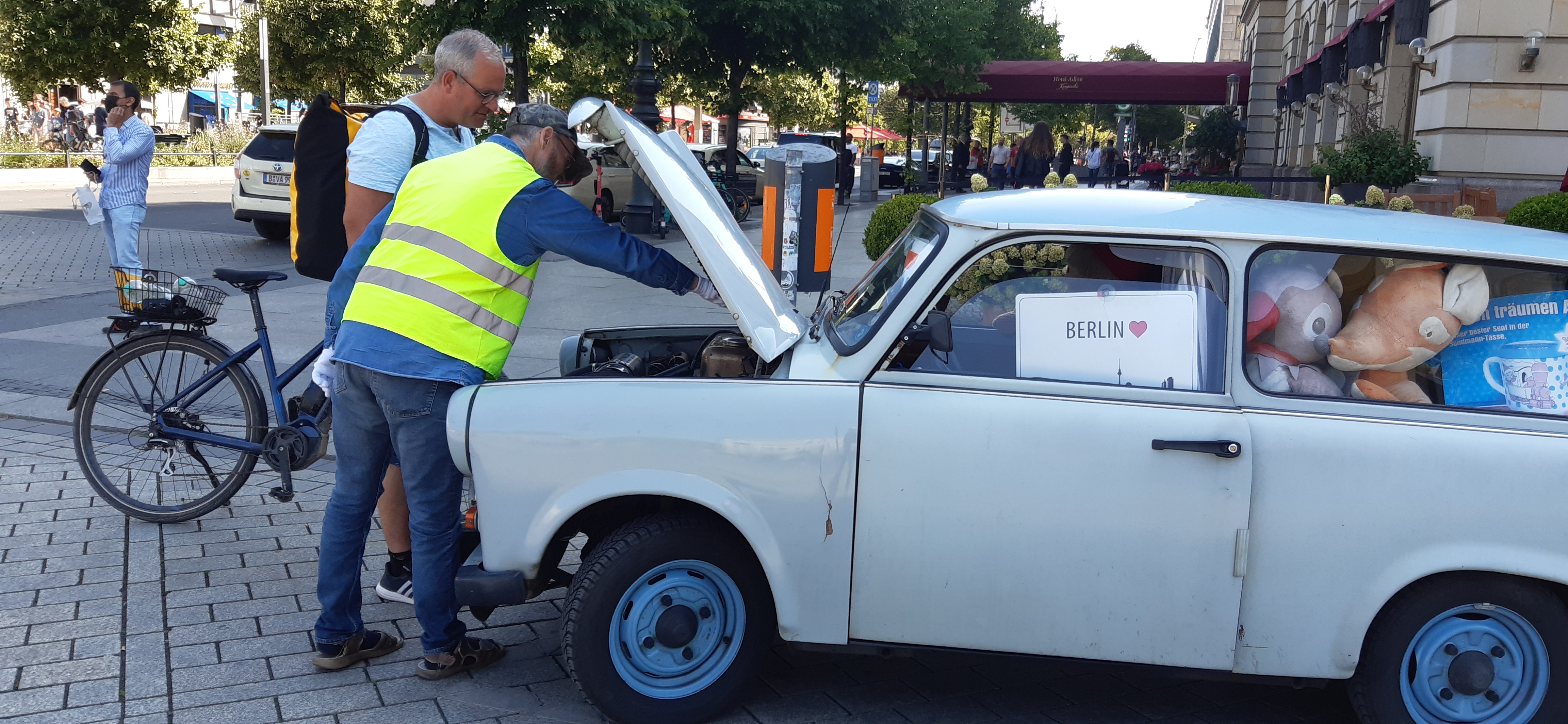 Deze meneer stond met zijn Trabant bij de Brandenburger Tor