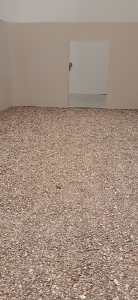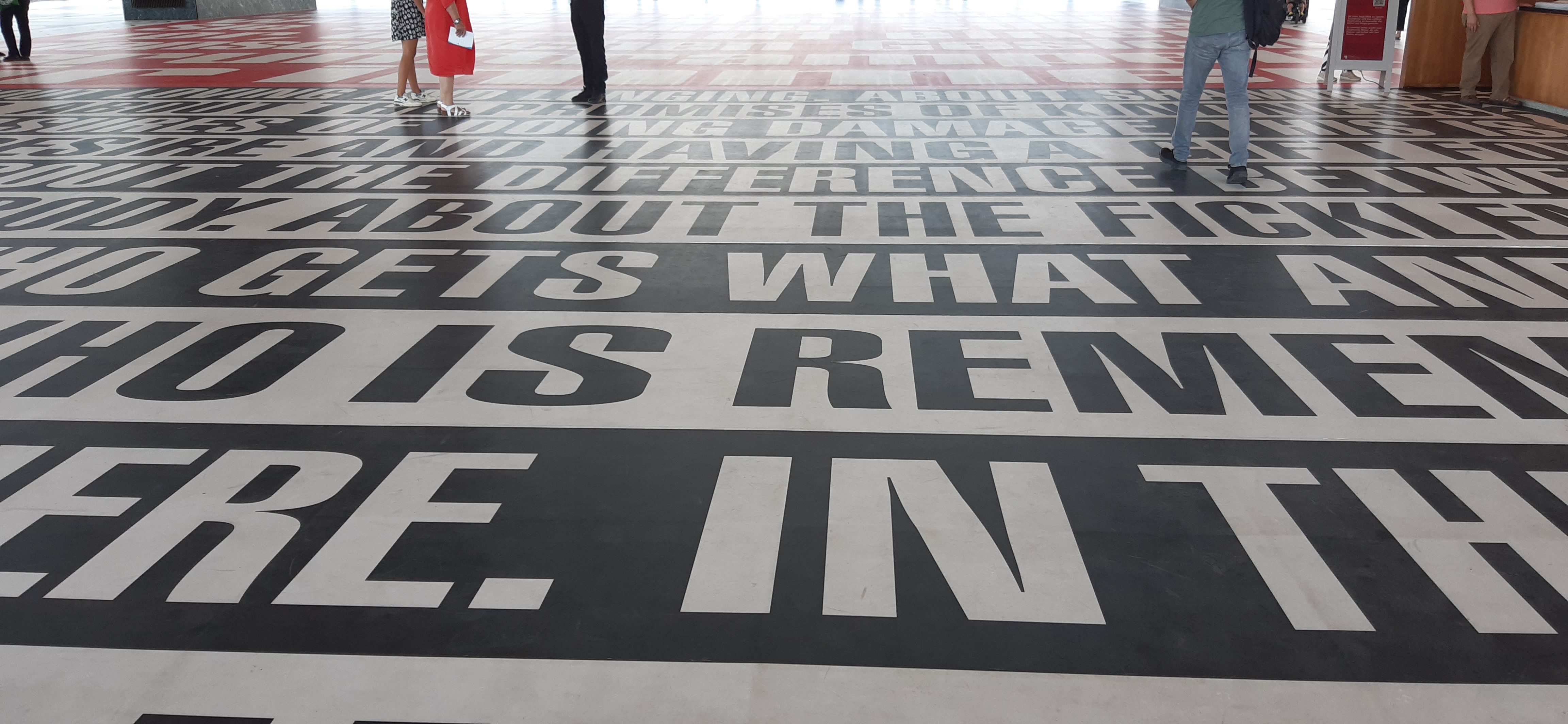 Waar de entree groot is en open en met een tekstkunstwerk op de vloer.. maar ik niet echt verrast werd door de kunst.