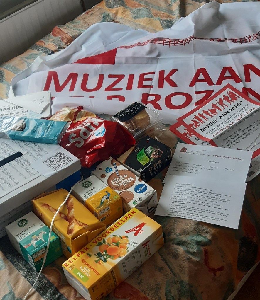 Mieke en ik misten elkaar bij de geplande ontmoetingsavond (allebei verhinderd) maar een telefoongesprek was een goed alternatief: genoeg informatie en positief gevoel om heel nieuwsgierig te zijn naar wie er zou komen. Mijn dochter kwam helpen bij het voorbereiden van het huis en het ontvangen van de gasten – waarvan je natuurlijk ook geen idee hebt. De organisatie bezorgde een grote tas met alle mogelijke materialen en lekkers. En de website van Muziek aan Huis kwam online