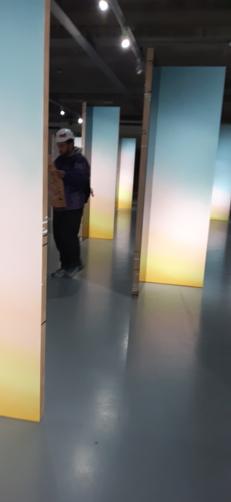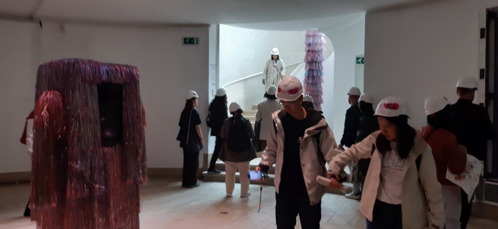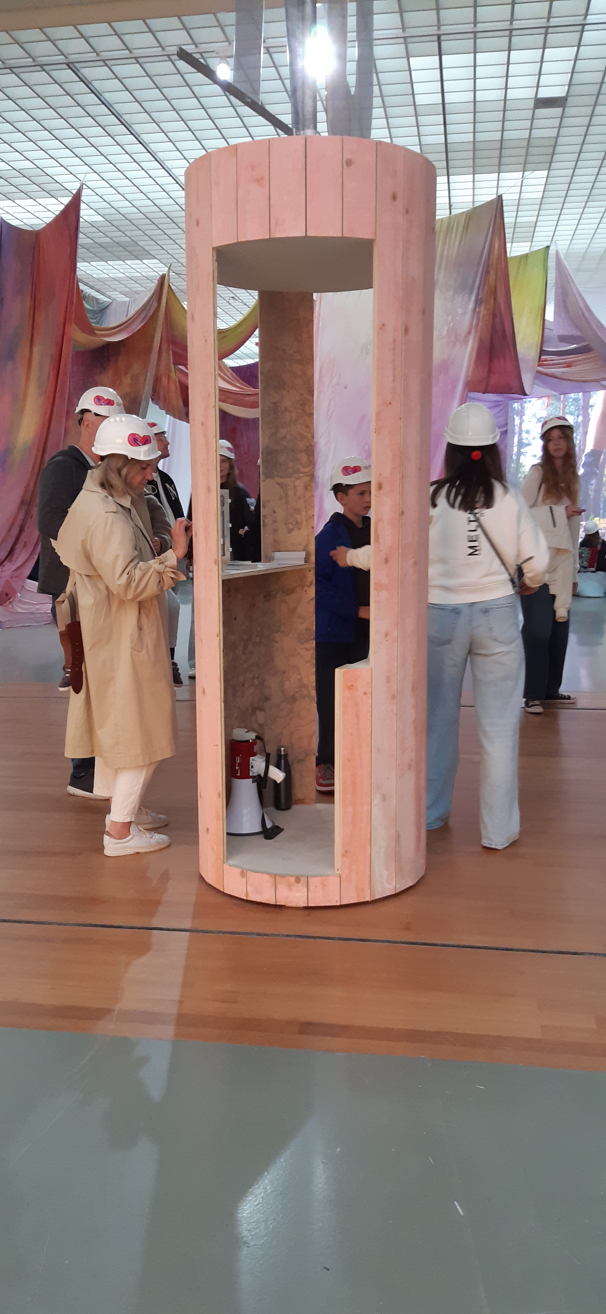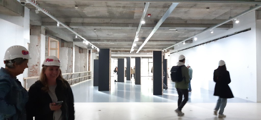 Voor het museum vormt zich een rij; mensen worden in groepjes toegelaten, krijgen een toelichting, een plattegrond en een bouwhelm, en dan kan je naar binnen!