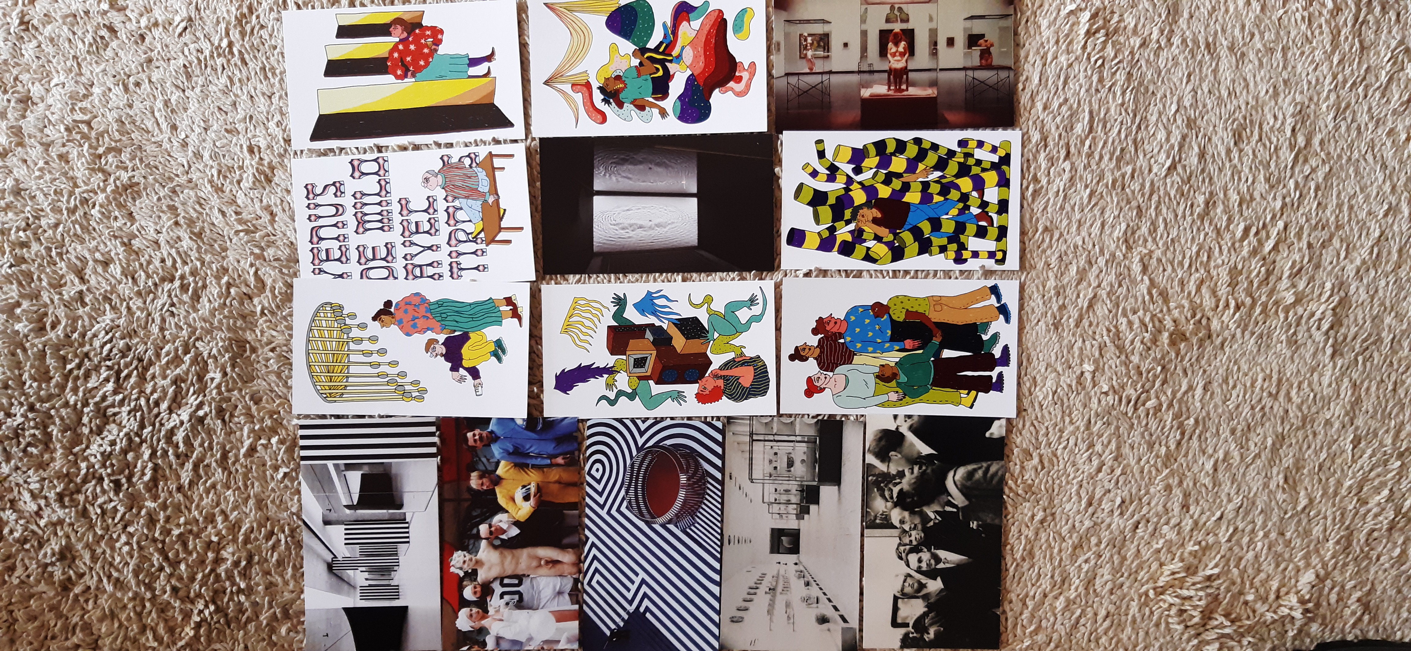 Hier en daar is een informatiepunt waar je kleine kaartjes kunt pakken: een plaatje en een gedachte.