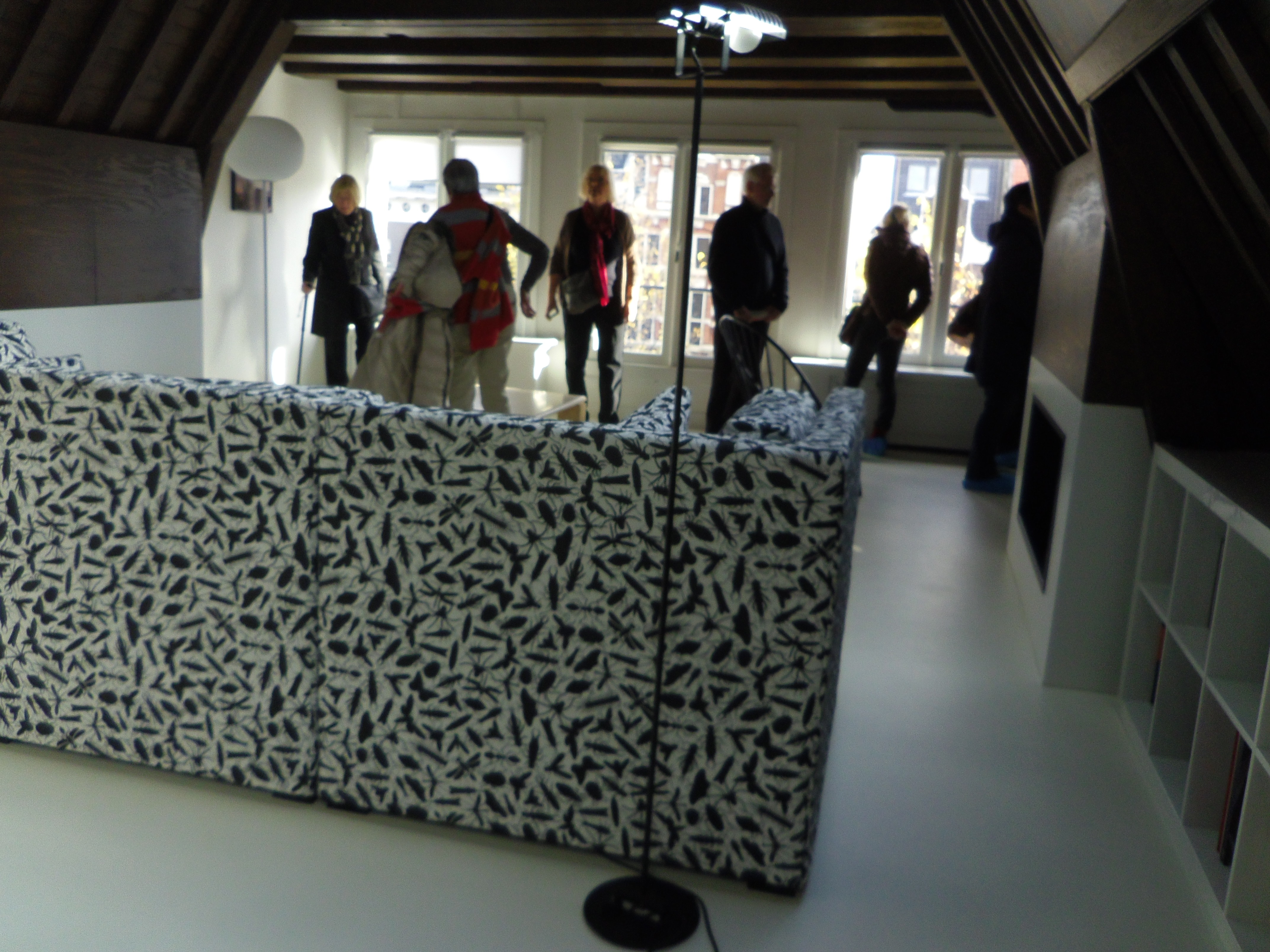 Nou ben ik een liefhebber van moderne kunst maar ik ben ook wel een architectuurminnaar en – een beetje ordinair, sorry – voyeur van huizen en werkplekken. En dat gecombineerd met mijn principiële, van (vrijzinnig protestants)  huis meegekregen gevoel voor tolerantie… Dus kon ik de manifestatie http://www.iamsterdam.com/en-GB/experience/what-to-do/whats-on/event-guide/november/chambres-des-canaux niet aan me voorbij laten gaan. Ik had nog een uitstapje met mijn zoon tegoed dus samen bezochten wij 14 van de 20 in de route opgenomen locaties.