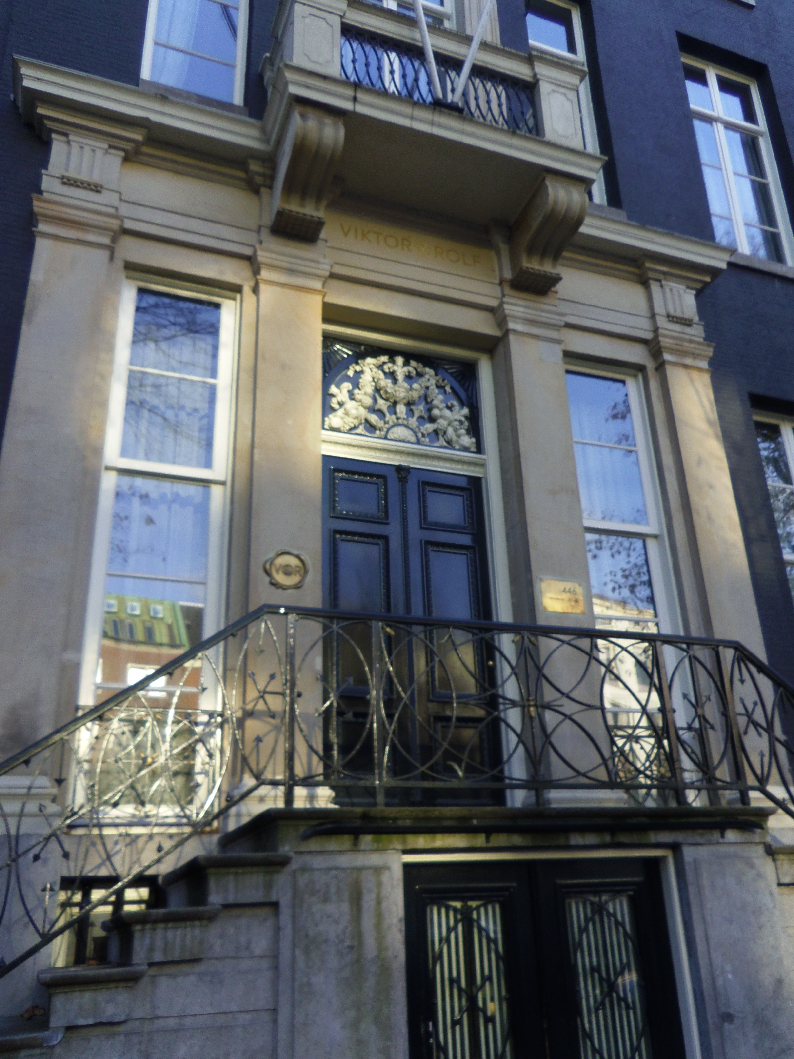 Tijdens de wandeling kwamen we langs veel interessante panden en ontdekten aan de hand van de naambordjes en geveldecoraties dat allerlei bekende mensen en organisaties in de Grachtengordel huizen. Victor en Rolf hebben hun naam en merk op traditionele wijze in beeld gebracht..