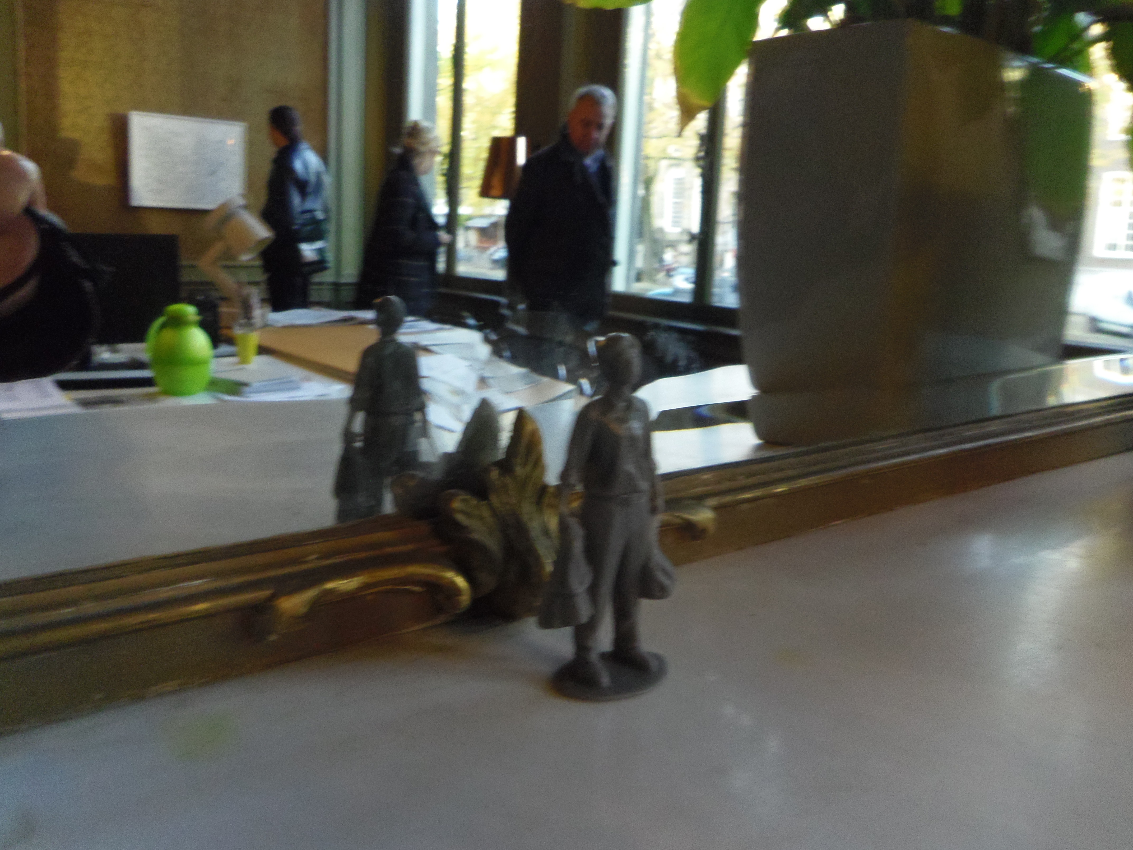 Het figuurtje van boven de deur, de ontheemde, vind je in mini terug