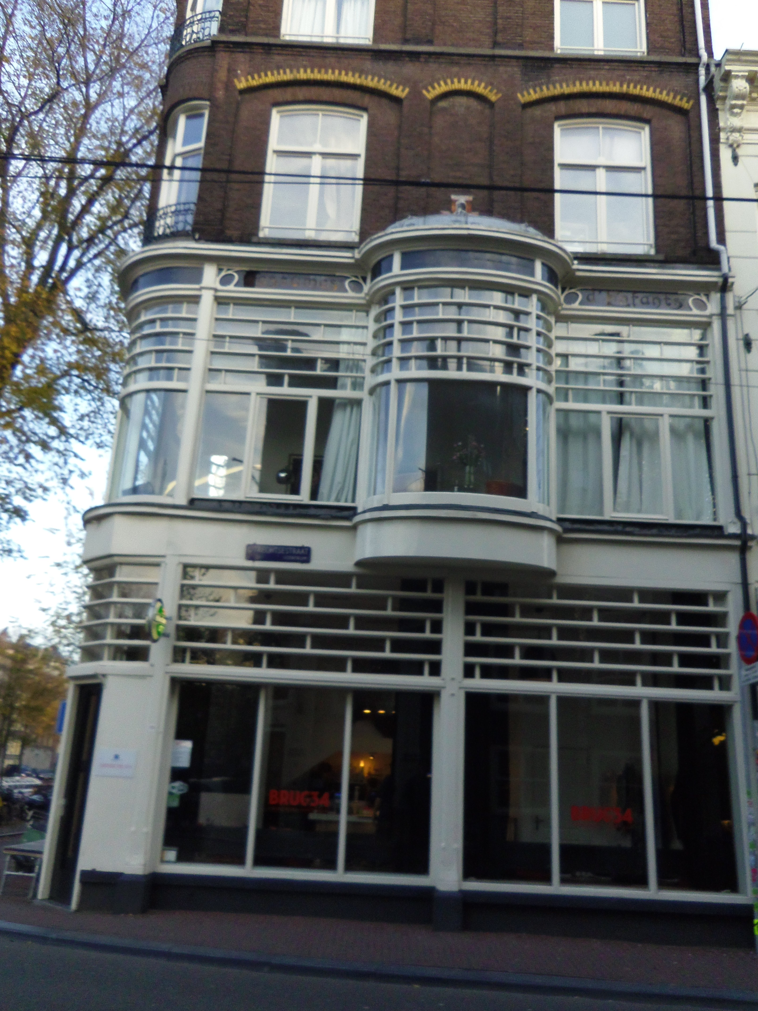 We zagen het NIOD… een uitbundig bewerkte gevel. O, zitten zij hier, wat mooi! Maar niet open.