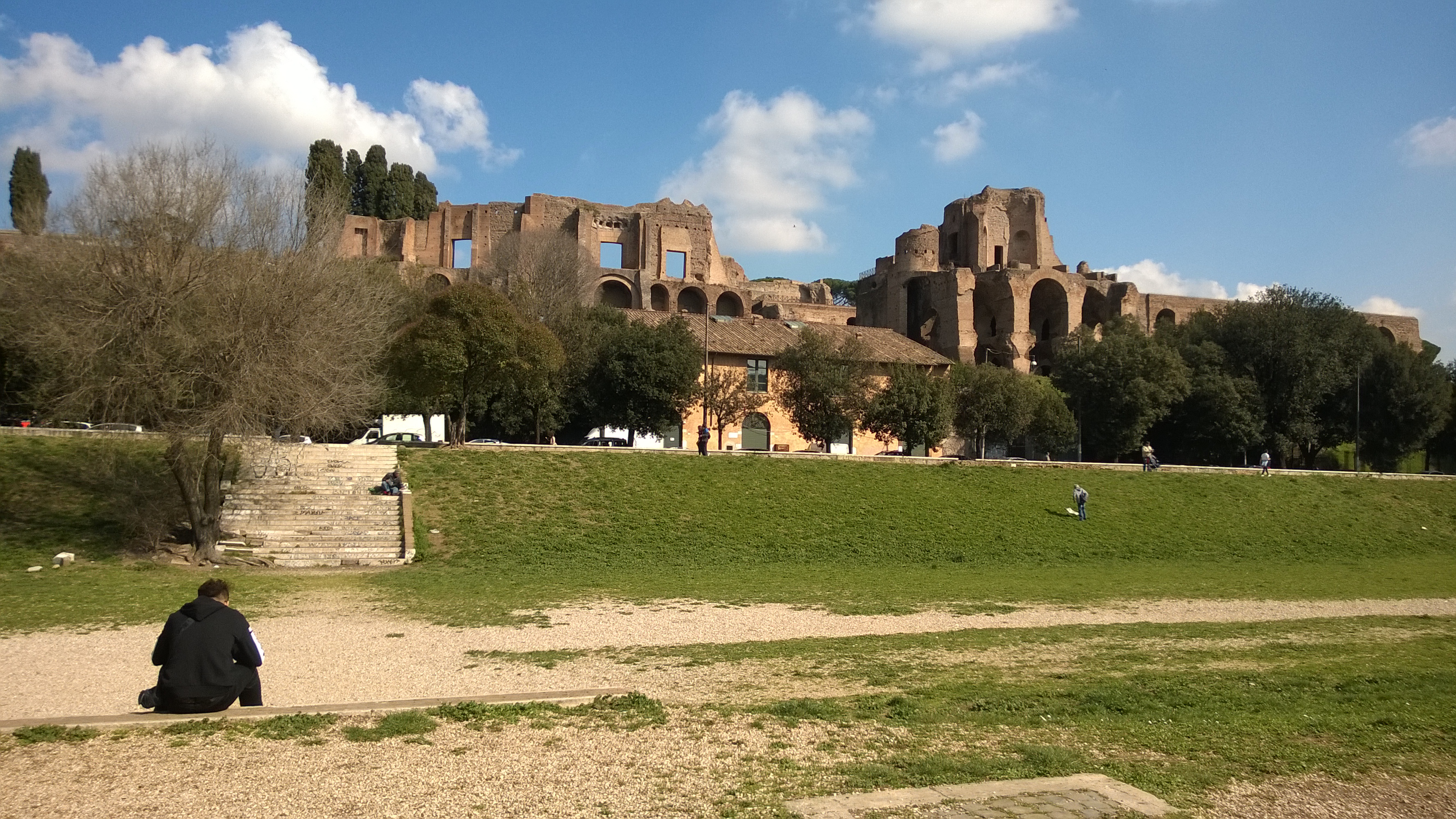 Ik was even in Rome. Twaalf dagen heet dat; met aftrek van reisdagen tien. Want, ja, het is maar twee uur vliegen, maar ik vind vliegen altijd een frustrerende ervaring qua efficiëncy. Je moet er een paar uur tevoren zijn, en als het  Schiphol is moet je nog rekening houden met de storingen in de tunnel.  Je koffer geef je af (dat is trouwens lang geleden – de laatste jaren meestal met alleen handbagage gereisd) en daar moet je dus op wachten als je allang bent geland. En het principe van een vliegreis is in extreme mate wat over openbaar vervoer in het algemeen wordt gezegd: Het vertrekt van waar je niet bent en het brengt je waar je niet wilt zijn. Wat dat betreft is de trein in het voordeel: je komt hartje centrum aan. Meestal. Deze keer zat ik wat dat betreft redelijk goed: ik had een appartementje gereserveerd vlakbij station Trastevere, met een rechtstreekse treinverbinding van Fiumicini. Zo dichtbij dat elke trein op 10 – 80 meter van mijn huisje passeerde, afhankelijk van spoor 1 t/m 6. En dan voel je dat de nabijheid van een spoorlijn went, en een snelweg nooit. WP_20150221_016 Dat blokje links.. tweede unit, geel geverfd. Daar zat ik. Zo had ik ruim de tijd om die dingen te doen waaraan ik bij eerdere bezoeken aan Rome nooit was toegekomen: een paar excursies, en verder gewoon doelloos de stad doorsjouwen. En op zijn tijd een poosje lekker op mezelf met een boek, en mijn potje koken.