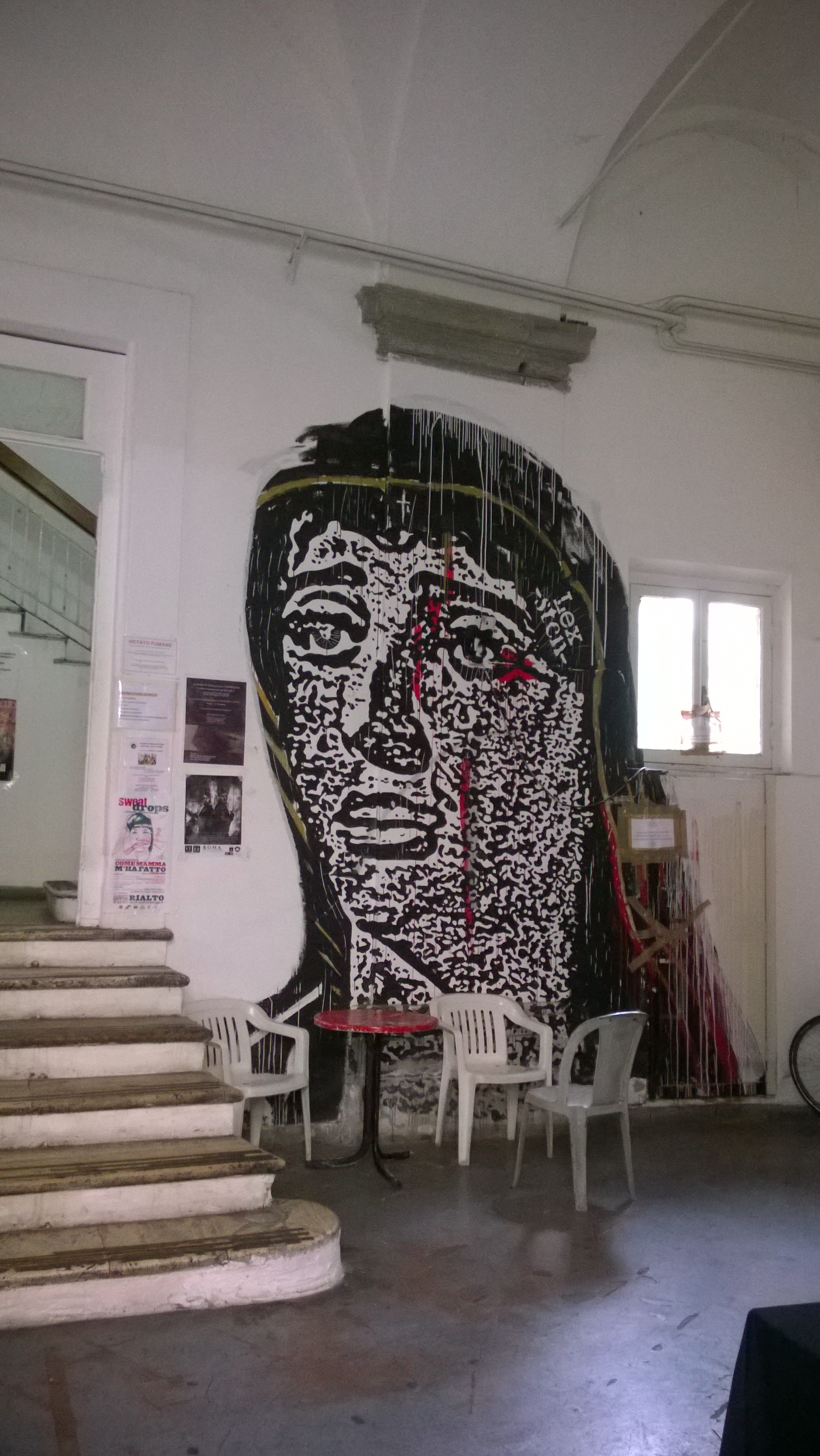 Loop je ten noorden van het Colosseum een stukje door: luxe wonen daar, en onverwacht een heel rustig park met straatnamen van linkse helden. WP_20150228_019  WP_20150228_022 De oude wijken waar men verdient aan de toerist – en terecht – met een pizzeria of een winkeltje. Waar je dan ook een onderdeel van het Ministerie van Onderwijs aantreft met een prachtig ritme van airco’s. WP_20150302_024 Die wijken die niet in de gratie zijn. – jammer maar helaas. Daar trof ik bijvoorbeeld wel een groot pand met de deur open en een stuk of wat gebruikers op A4’s aangegeven.
